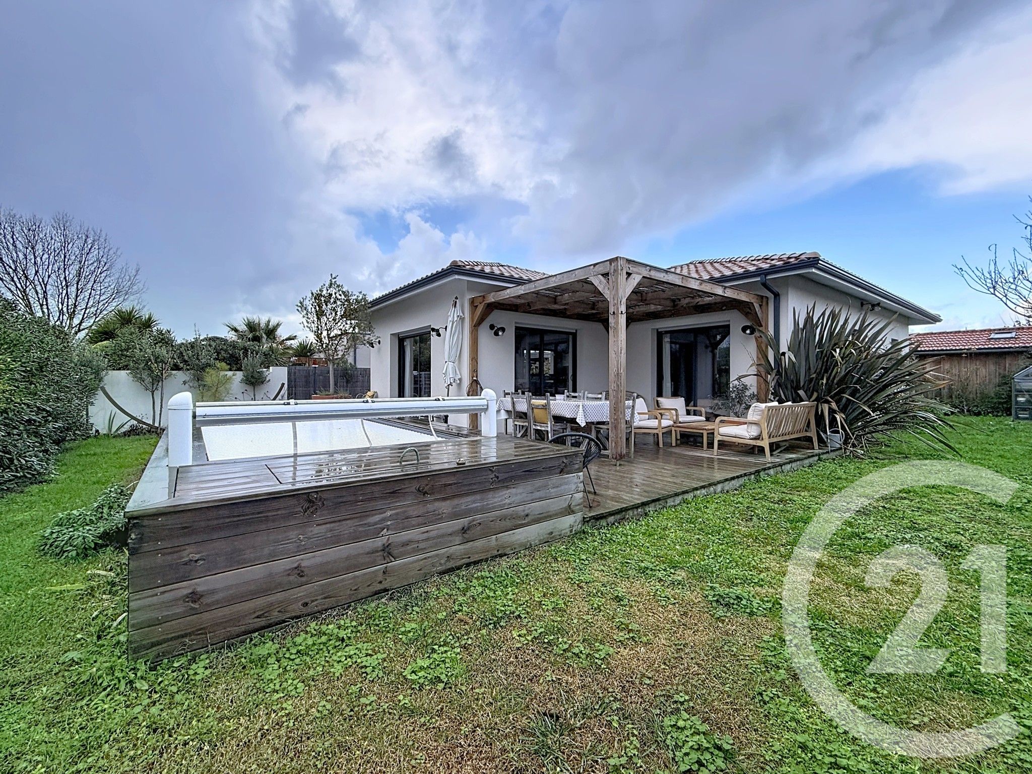 À l'extérieur, vous serez immédiatement charmé par une terrasse en bois accueillante, un jardin arboré et intime de plus de 400 m², ainsi qu'une piscine chauffée, idéale pour profiter pleinement des beaux jours en toute tranquillité.